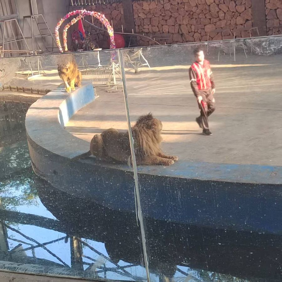 周围的游客都在拍照,有人喊着“让狮子动一动”,可它依旧纹丝不动,阳光照在它的皮毛上,泛着暖暖的光。我趴在玻璃围栏上看了好久,忽然觉得这头狮子好像也有自己的小脾气,不想被人指挥着表演,只想安安静静地晒晒太阳。