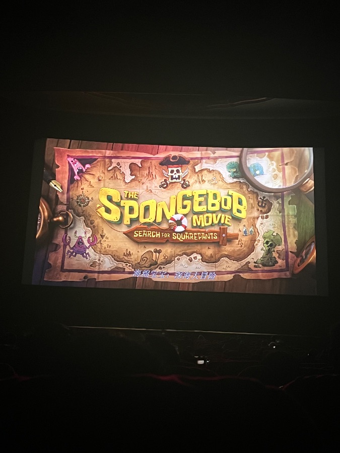 昏暗的影院里,银幕上《海绵宝宝:深海大冒险》的海报格外醒目。泛黄的藏宝地图背景布满童趣细节,骷髅旗、小怪兽与潜水镜错落点缀,勾勒出奇幻的深海冒险氛围。海绵宝宝的经典字体张扬又可爱,“SEARCH FOR SQUAREPANTS”的英文标语与中文片名相互呼应,瞬间拉满期待值。光影里,熟悉的卡通IP以全新的冒险故事登场,仿佛能听见海绵宝宝爽朗的笑声,让这场影院之旅充满了童真与欢乐,也让观众重回那个充满奇思妙想的比奇堡海底世界。