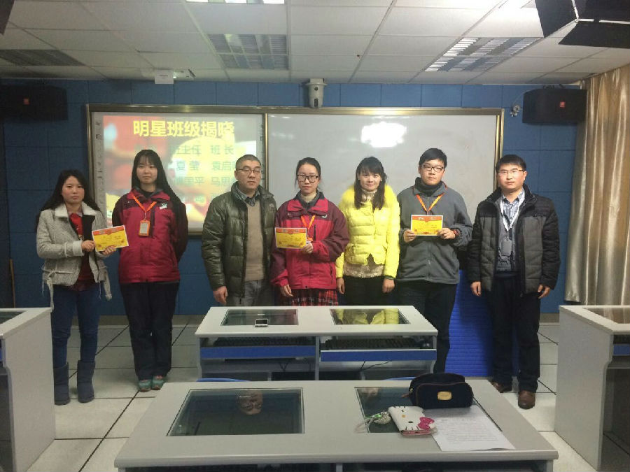 由冯志军老师为明星班级颁奖。之后1231501的班主任夏莹老师作为代表进行发言,其中夏莹老师对易班工作站成员的高度评价“团结、真诚、友爱”令在场工作站成员感动不已。