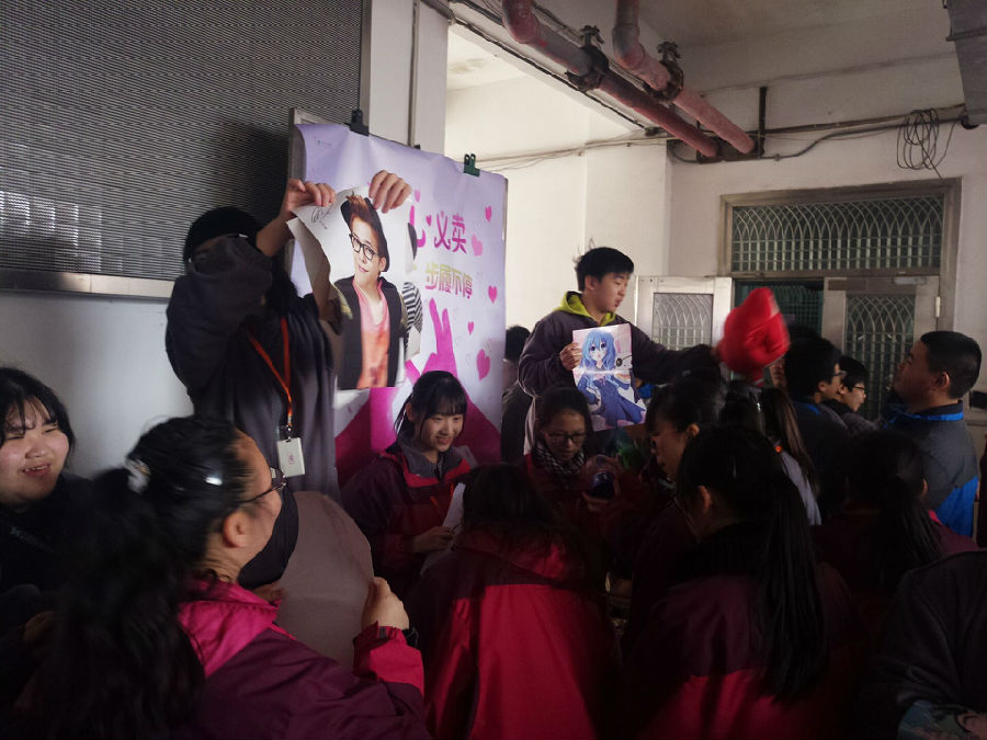 每个班级都有一个摊位,大声的吆喝着这里的爱心义卖品,整个大厅里熙熙攘攘,充满着学生们的吆喝声。在此次活动中,老师们也纷纷的花费自己的钱买爱心义卖品,来为此次募捐活动献上一份爱心。
