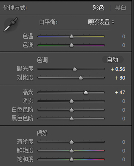 第一步:我们可以进行一些参数的调整,比如调整照片整体的曝光度,对比度以及饱和度。