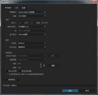第二步:新建一个序列,序列格式为:1080P 25帧每秒。