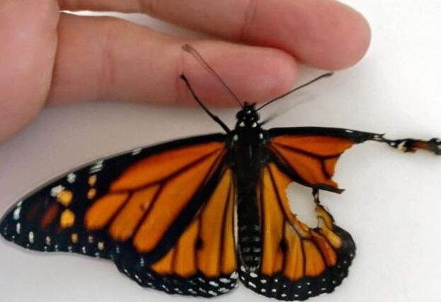大概因为职业的关系,这种精细的缝缝补补对她来说,没有一点难度,虽然是第一次做这件事,但整个过程只用了不到10分钟。 修复结束后,她把这只蝴蝶放进笼子里,让它休息,并给它准备了一些用蜂蜜水和运动饮料制成的甘露。第二天,她把蝴蝶带到花园,祈祷它能活下去,她把蝴蝶托在手里,随后,小家伙乘着微风,竟然真的展翅飞到了空中,在花丛里盘旋了几圈之后,落到了灌木丛上,片刻之后,它又起飞朝着阳光飞去,飞出了花园。