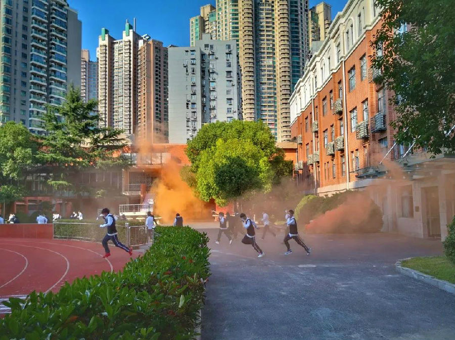 一早,随着专业部主任傅瑜老师的一声令下,逃生演练正式拉开了帷幕。