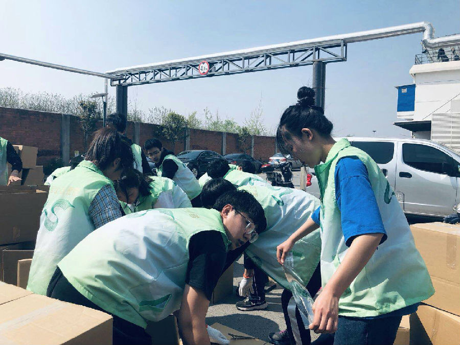 四月份气温逐渐上升,艳阳高照伴随着26°的气温,不免有些炎热,不少志愿者都出现了轻度晒伤、手心磨破等问题,但是这丝毫没有影响志愿者们的工作热情。在大家的协力合作下,在四月六日志愿者们用了6小时,打包了700箱书籍,提前完成了书籍打包工作。