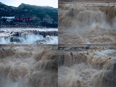 接下来的一个景点大家绝对不会陌生,“盖河漩涡,如一壶然”----壶口瀑布。“黄河之水天上来,奔流到海不复回”这句名句由此而来,让无数游客络绎不绝。那奔流的黄河水,像千军万马一样向前奔流。就像《保卫黄河》里写的一样,风在吼,马在叫,黄河在咆哮。