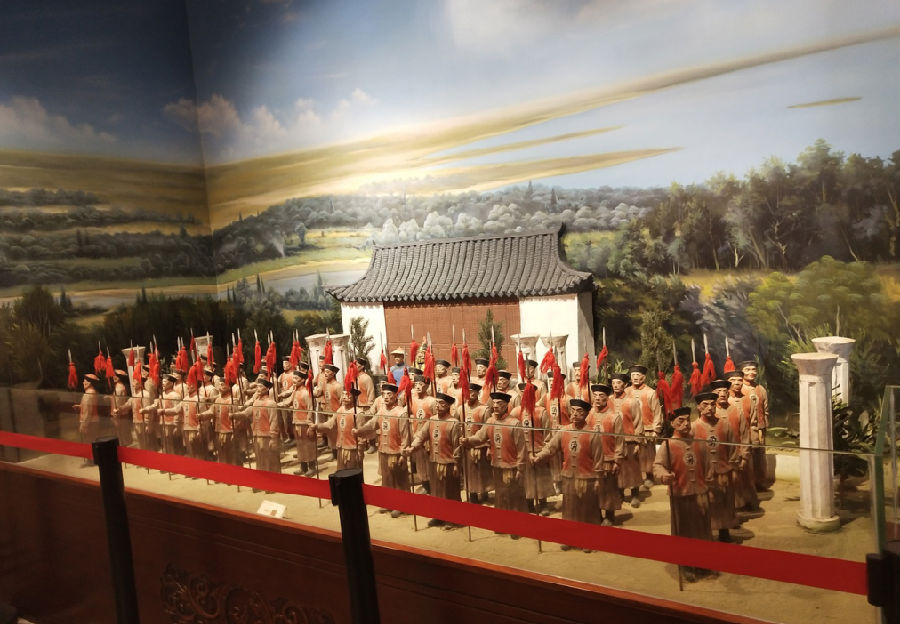 跟随着讲解员的步伐,他们来到学宫最大的建筑“大成殿”,门上附有一张张图介绍汉语成语由来的小故事。大殿里成列了许多古船的建筑模型,做工十分精湛逼真。墙上悬挂着一幅幅古老的图片介绍有关知名中国历史战争事件,如郑和沿崇明下西洋事件和杜少如与民族工作等。数百名战士手持刀剑站立在城门的宏伟模型和红军抗日的大型观赏模型让同学们叹为观止。通过讲解员对当时的社会历史环境的详细讲述。不但让同学们近距离的感受到了战争中军人们的勇敢和艰难,更能激发学生们对祖国的热爱和报效祖国的决心。