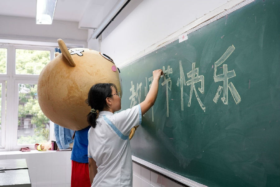 清晨,熊熊熊打开窗户,一股新鲜的空气迎面扑来,让熊熊熊感到沁人心脾,伴随着一缕缕金色的光芒,太阳出来了,露出了慈祥的笑脸。熊熊熊和同学们提前来到了教室,拿起粉笔在黑板上写着“老师,教师节快乐哦!”