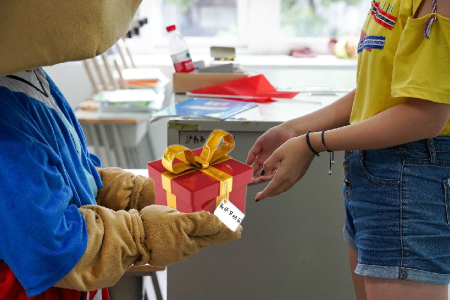 之后,熊熊熊给老师送了贺卡;有的同学送花;有的同学送小礼物;还有的