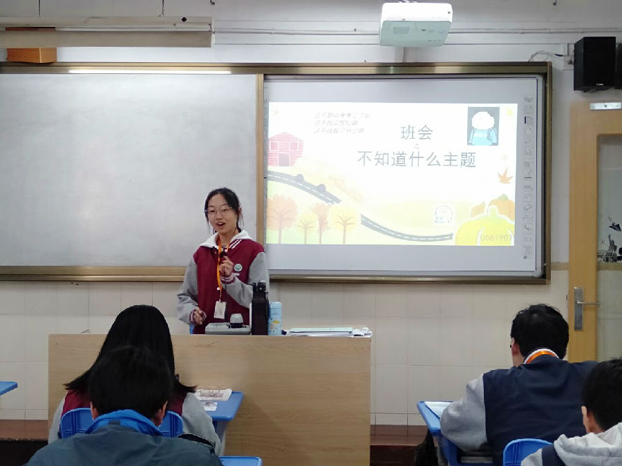这一周是我们在商会校的第11周,上周我们进行了紧张的期中考试,这周我们开展了放松愉快的班会活动,主持人就是我们的缪润同学。课上我们举行了三个有意思的小活动,同学们也都在积极地参与着活动,总的来说这节班会课同学们过的很愉快!