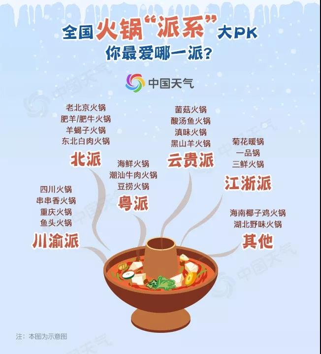 每年冬天,全国各地小伙伴纷纷加入火锅大军。此外,还有以菊花暖锅、一品锅、三鲜火锅等为代表的“江浙派”火锅,以菌菇火锅、酸汤鱼火锅等为代表的“云贵派”火锅,以及以海南椰子鸡火锅、湖北野味火锅等为代表的其他种类火锅。
