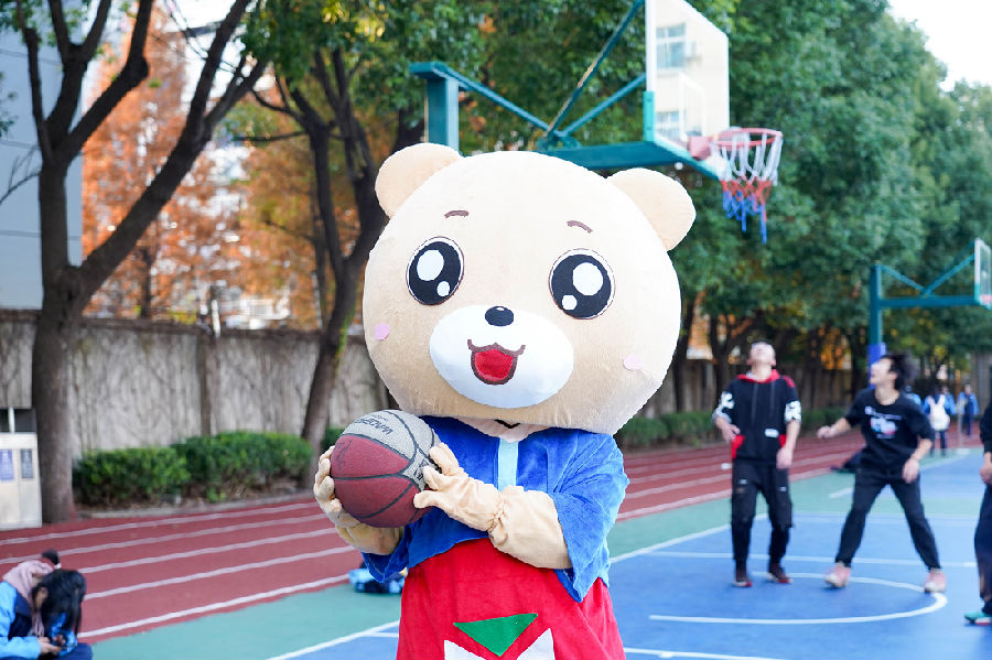 循着声音望去,熊熊熊看到了许多同学在打篮球。