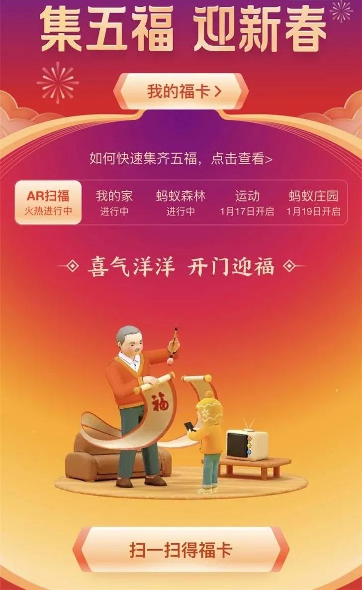 昨天,支付宝集五福的活动已上线。
