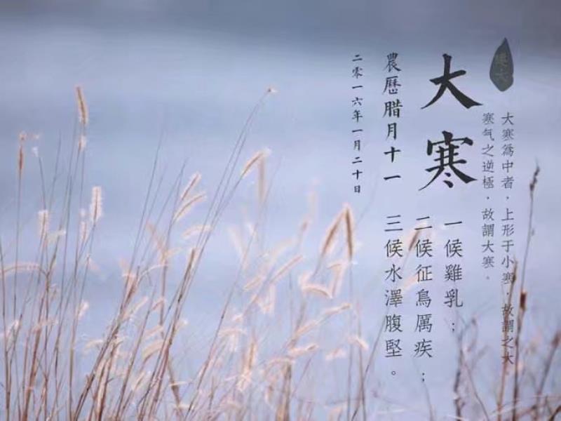 二十四节气中最后一个节气,每年1月20日前后太阳到达黄经300°时为“大寒”。大寒,是天气寒冷到极点的意思。《授时通考·天时》引《三礼义宗》:“大寒为中者,上形于小寒,故谓之大......寒气之逆极,故谓大寒。”这时寒潮南下频繁,是我国大部地区一年中的寒冷时期,风大,低温,地面积雪不化,呈现出冰天雪地、天寒地冻的严寒景象。大寒是中国二十四节气中的最后一个,过了大寒又立春,即迎来新一年的节气轮回。