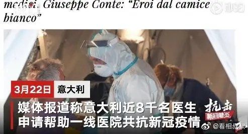 2020年1月底,一种新型冠状病毒突然打入人们的视野中,这种病毒从未被发现过且危险系数很高,具有传染性。于是人们开始戴起口罩,不出门,待在家里防护疫情。而在疫情的源头武汉,有很多冲在一线的医护人员,用尽他们所能做的所有事来帮助得了病毒的人。也极力安抚好病人的情绪,但病毒越来越猖狂,感染与死亡人数日渐增多。在3月22日,意大利近8000名医生申请帮助一线医院共抗新冠疫情。意大利政府此前公开招募300名医生,不料却收到了7923份申请。申请加入的医生有青年人,也有80多岁的老医生。这支新的医疗队伍将从伦巴第大区开始工作,随后将分派到该国其他急需医生的地区。这种跨国的援助使我们感受到了极大的温暖与鼓励,相信我们能挺过这段难熬的日子,在光明破碎黑暗的那一天重新相见。