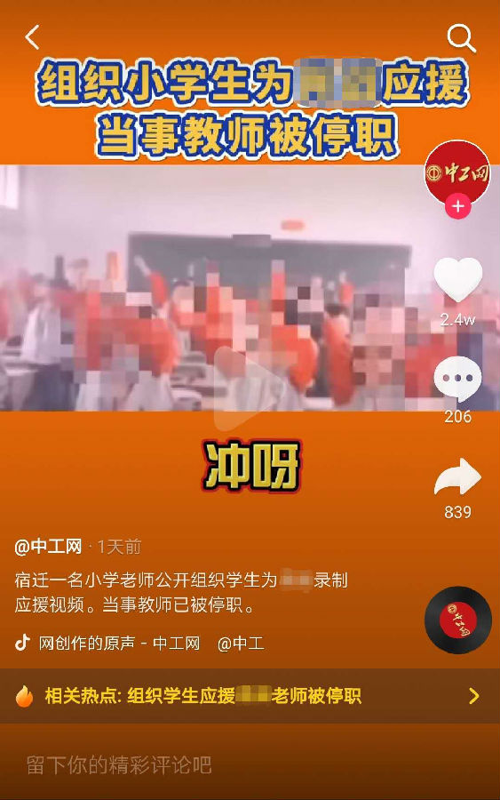 前阵子被某小学老师组织全班同学为某明星应援而被停职停课处理。组织学生为自己的偶像应援,这一举动不仅突破了职业道德规范,还有损教师的形象。该明星也发文称“职业底‘线’不能破,理性之‘圈’不能出”。