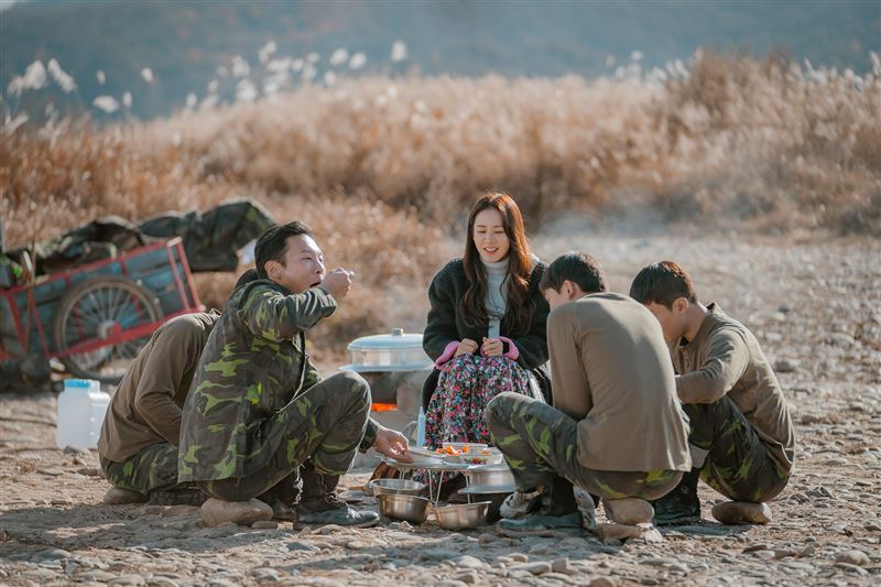 《爱的迫降》孙艺珍回到韩国之前,官兵们与孙艺真野餐烤肉的取景地在韩国忠州的比内岛。大片芦苇草也是吸引游客的景物之一