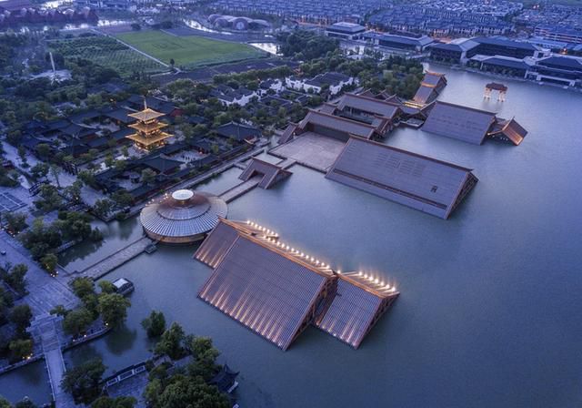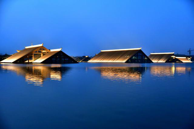 现在走进广富林,红漆木石牌坊面而至。明清时期建筑粉墙黛瓦,给人置身穿越剧的快感。至于其标志性的水下博物馆建筑群,则陡坡斜顶木梁玻璃顶形象示人。博物馆漂在水面,晚华灯上,流溢彩,独特的计使人联想到"贞观之治"华世界。园占地1.3平千米,建筑风格迥异,恢弘大气又不失清新约。
