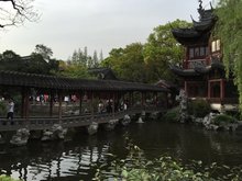 提到豫园,便想到九曲桥。九曲桥听名称便知晓,拥有九曲十八弯。每一段弯曲处就雕刻着一朵精美的荷花。池中央,一座荷花仙子的雕像似乎含笑迎接着来往的游客。九曲桥如今的桥面为花岗石板,每一弯曲处一块石板上均雕刻一朵季节性花朵,如正月水仙、二月杏花、三月桃花……直到十二月腊梅;并在九曲桥头尾的两块石板上各雕刻一朵荷花。在湖心亭茶楼门前的一段桥面,中间雕刻一朵荷花,四角则分别雕刻彩云九曲桥。