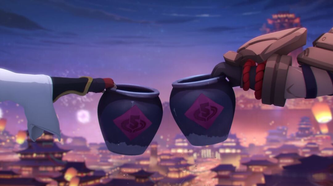 动画刚开始出现了李白在屋顶舞剑的场景,紧接着出现了李白和一人碰杯喝酒的场景,从这个手臂我们可以看出是苏烈,所以我们可以推断出李白和苏烈的好友相聚,后面出现的酒罐旁边的信封也印证了这点。