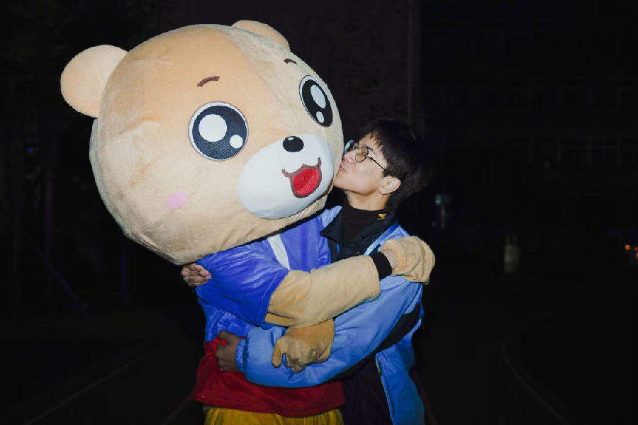 活动期间,易班的吉祥物易班熊也穿插在人群之中,他时不时停下脚步与同学们合影留念,快门咔嚓,定格下了熊熊和同学们的快乐时光。