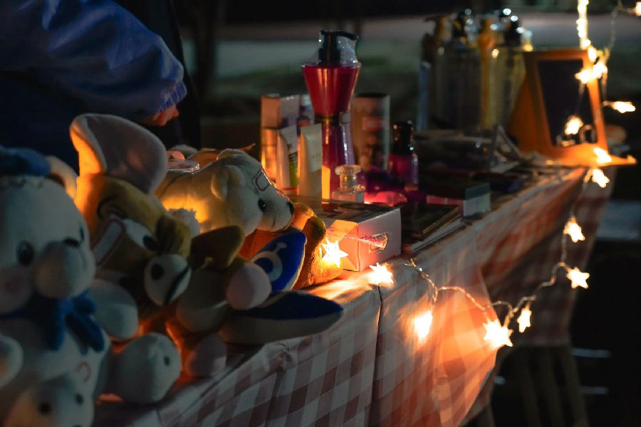 从霞光万道至月落星沉,此刻唯有操场上还涌动着热闹的人群。本次活动至此已临近尾声,冷风吹不散同学们的热情,各摊位上的物品早已被一抢而空,不少老师也被热闹的活动吸引,纷纷停下脚步,驻足而观。