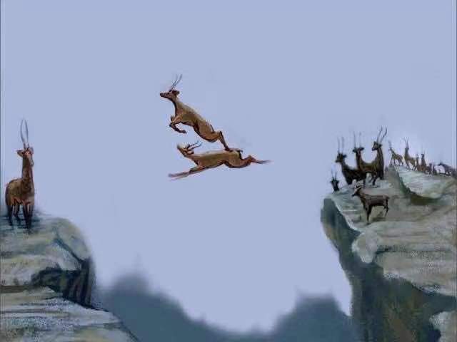 类似的事件你经常发生在那些看似很感人的小故事里。不知道大家有没有看过这篇文章『一群羊被猎人感到了悬崖边上,老羊纷纷主动充当跳板,让小羚羊们跳过悬崖。』这篇斑羚飞渡不知赚到了多少小朋友的眼泪,有被感动到的麻烦举个手。但是很不幸这篇文章也是假的,因为斑羚根本不是群居动物。他们通常独居或者两三只一起活动,在自然界中,根本不存在几十只斑羚一起奔跑的情况。而且,斑羚生活在山崖上,平时动不动就在悬崖上跳,为了躲猎人还要让同伴当跳板,瞧不起谁呢?