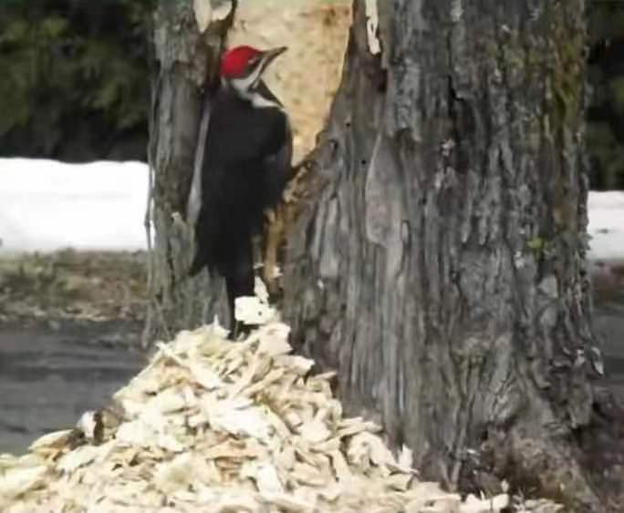 小时候的课本上经常把啄木鸟描成大树医生,很多动画片里出现的啄木鸟形象,也带着护士帽。但是啄木鸟经常会把树弄成这样↓妈呀,光头强直呼内行。