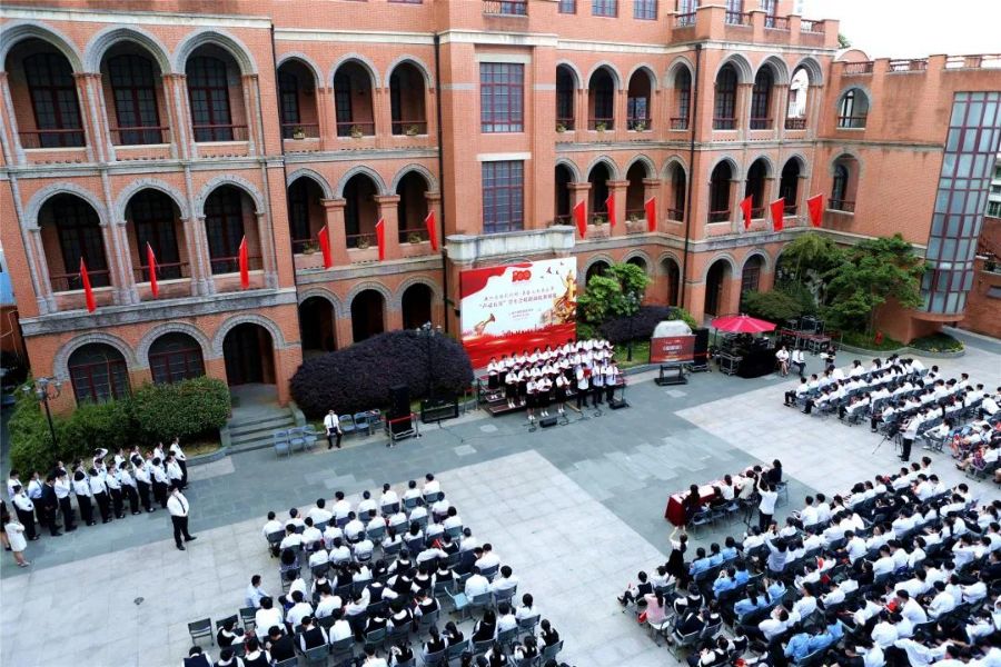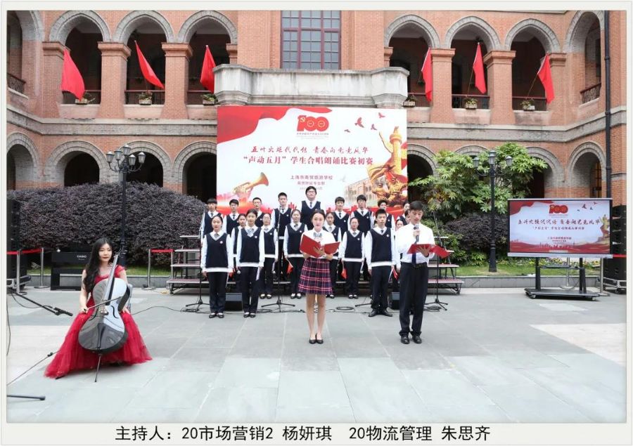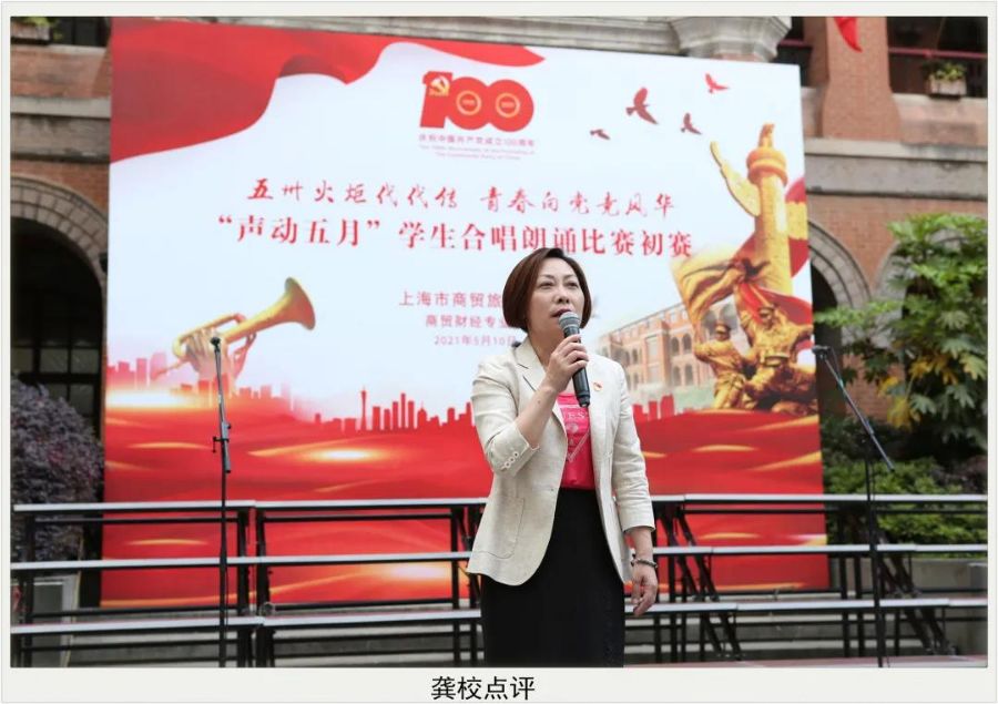 以青春之歌,唱百年风华。为庆祝建党100周年,5月10日,商贸财经专业部在贵州路101号操场举行了“声动五月”学生合唱朗诵比赛初赛,师生们用歌声回顾党的伟大历程,用旋律致敬党的百年峥嵘岁月。校党总支副书记兼副校长汪志颖、副校长龚红兵、德育处主任包凌岚、商贸财经专业部主任周健、学校艺术总监乌圆晓以及资深音乐老师陈迷娜担任评委。