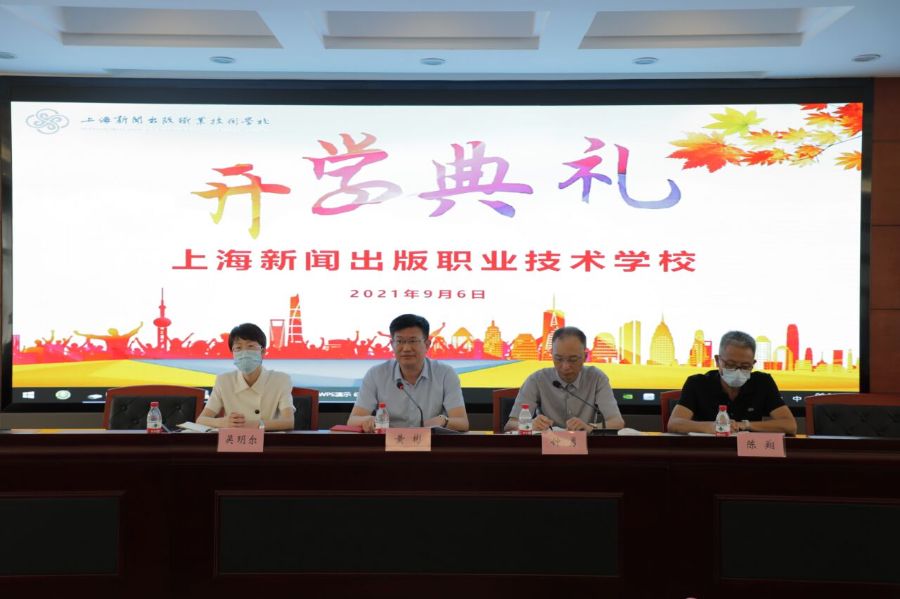 2021年9月6日上午,上海新闻出版职业技术学校2021级新生开学典礼在宝山校区四楼阶梯教室举行,宝山、青浦校区新生们在教室观看直播。学校党委书记、校长黄彬,教培中心主任、常务副校长钟勇,纪委书记吴玥尔,副校长陈翔纷纷出席。黄彬校长做新生致辞讲话,钟勇副校长主持。