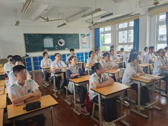 随后,同学们一同观赏并认真学习了庆祝中.国.共.产.党成立100周年大会上共青团员及少先队员代表的集体献词。今年暑期参与虹口区中学生共.产.主.义学校的学员代表,来自19级国商中高班的李爽谈了自己的感悟。