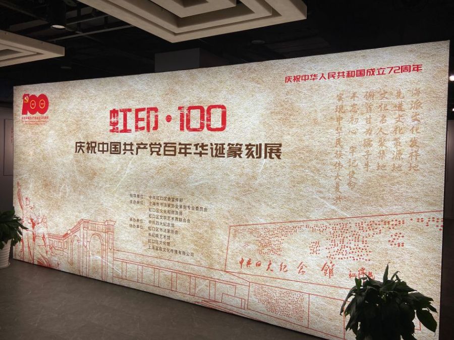 纪念馆于扩建后新设“虹印100——庆祝中共百年华诞篆刻展”。室内白墙红章,尽显红色意味,吸引了我校同学们的注意力,纷纷驻足拍照参观。展览内安放了诸多展板,其中凝聚了历史悠久的“新青年”印章,与国家各地印社社员们的心血。不仅如此,青少年印章作品也列入其中,我国青少年对于国家的热爱与先烈的缅怀在小小的红色印章中无不体现完全。