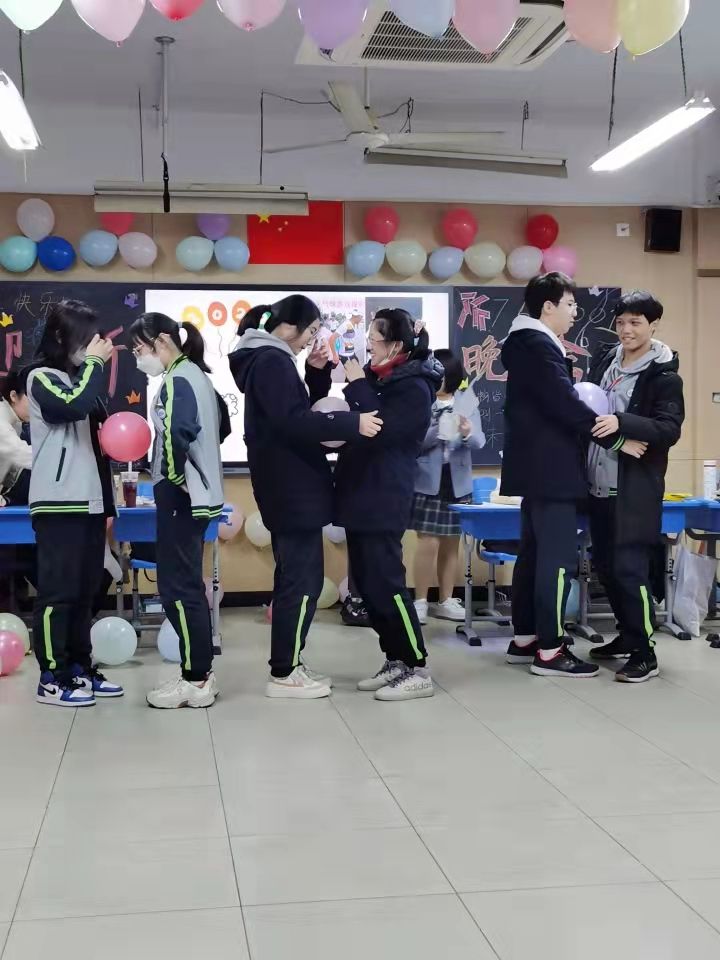 为了筹备这次晚会,当天一大早大部分同学都早早的来到学校,帮助我一起布置教室。打气球和扎气球的同学个个完美配合着,高的男生与女生把气球贴到白墙上,大家都井然有序的进行着。