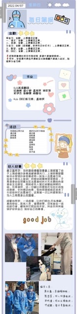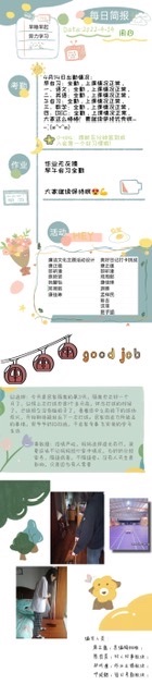 上海疫情来势汹汹,居家已久的同学们是否已经感到无聊?特此我班班主任提出设置每日简报的创意。代理班长唐正蕴组织学习委员邵昕潼(负责每日作业反馈),纪律班长邓周懿(负责每日出勤情况),心理委员陈哲贤(负责每日好人好事)一起编辑完成由4大板块组成的1262101班专属每日简报。