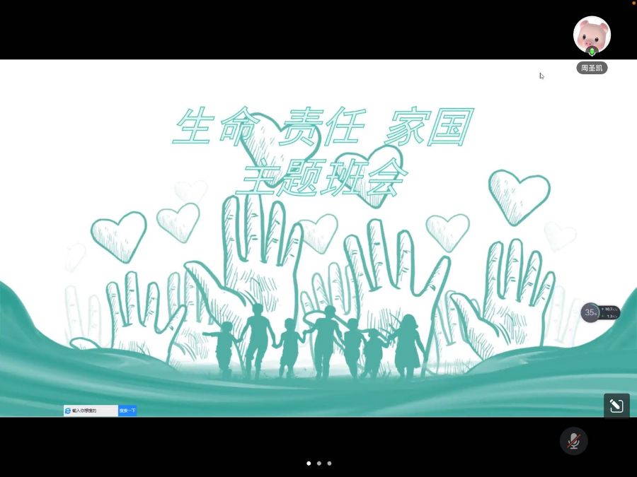 此次班会由班长与团支书开展,主题为“生命、责任、家园”。首先一起回顾了新冠疫情,从2020年武汉首发现的手足无措到现在的变化可以说是很大了,基本可以说是已经控制的很好了,但2022年3月疫情在上海又再次严重爆发,大家也有恐慌心理,与此同时我们了解了三位同学在疫情期间是怎样合理安排的。这次的疫情看到了多样的上海,有无私奉献的逆行者,也有蛮不讲理的人,暴露的问题是管控粗放,各自为战、对国家防疫的政策执行不坚决、对市民的引导不够、相关人员应该胸襟磊落,振奋精神,直面问题。上海这次的乱象是大家都没想到的,也给其他的城市留下了不好的印象。