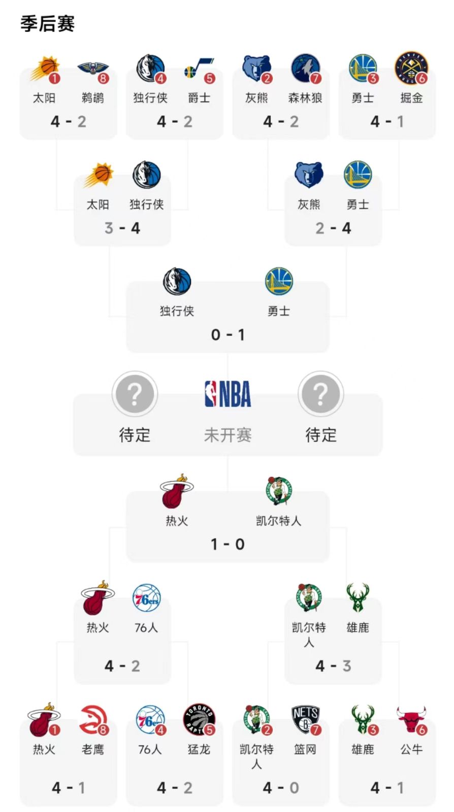 东部决赛首场比赛,热火硬汉气息十足,凯尔特人出师不利,而西部决赛,独行侠作客勇士的金色海洋,下半场手感严重失准,客场负于勇士。但分区决赛才进行了一轮,别忘了,常规赛排名第一的太阳就是在连胜两局2-0的情况下被逆转翻盘,痛失好局。所以,比赛尚未落下帷幕,四支分区顶级强者将会决出两位胜者会师总决赛,争夺2022赛季NBA总冠军。
