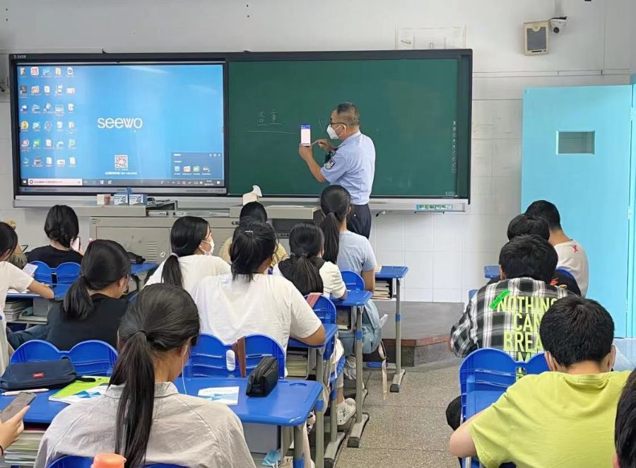202299日,为提升新生对诈骗的自我防范意识,协力创造美好安全校园生活。上海新闻出版职业技术学校特邀外校警官利用班会课的时间以线下交流方式对新生进行反诈宣传。