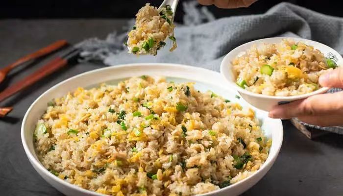 扬州炒饭,又名扬州蛋炒饭,是江苏扬州经典的美食。主要食材有米饭、火腿、鸡蛋、虾仁等。扬州炒饭选料严谨、制作精细、加工讲究,而且注重配色。炒制完成后,颗粒分明、粒粒松散、软硬有度、色彩调和、光泽饱满、配料多样、鲜嫩滑爽、香糯可口。