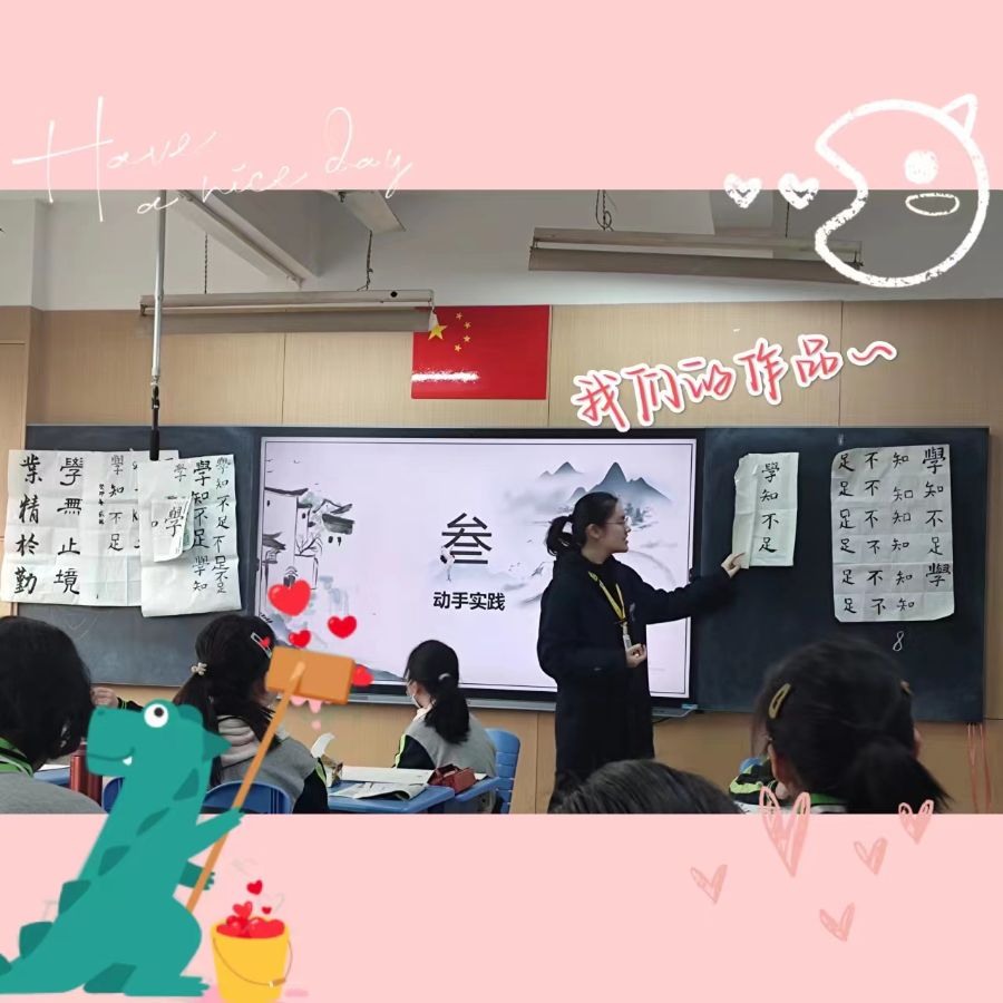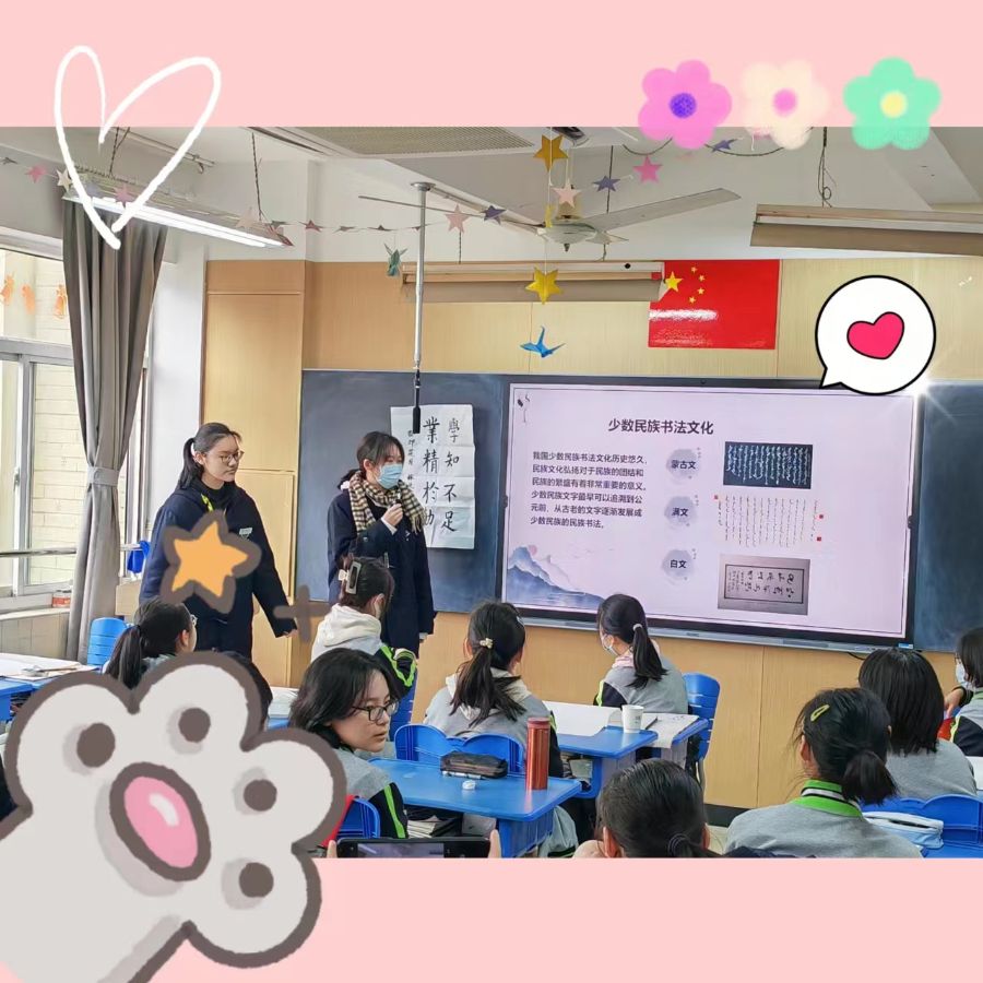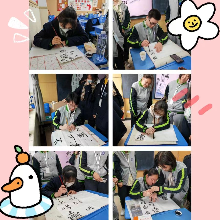 接下来同学们以小组为单位进行书法创作,并由林晓辉张丝琪两位同学进行指导。
