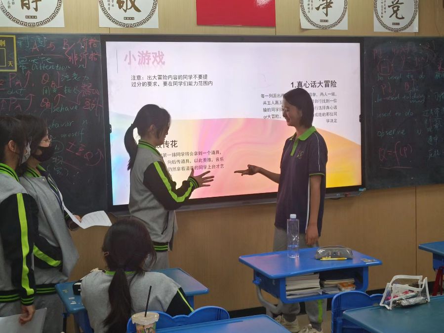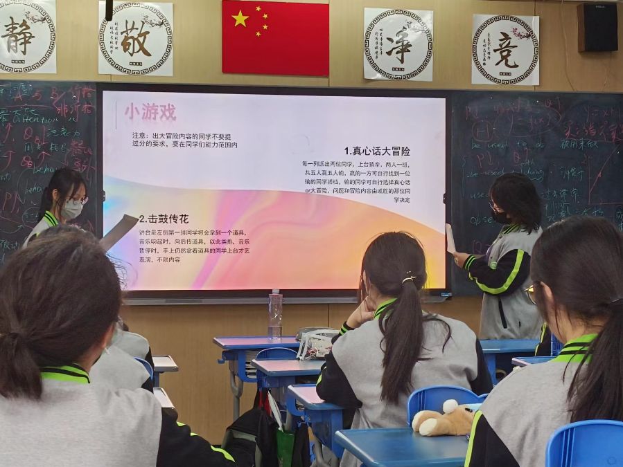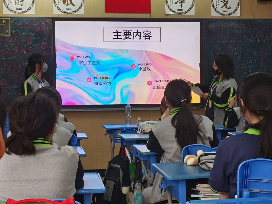 国庆小长假一上来,同学们都表现出了对于学习的热情,在假期中,同学们积极准备参与班会,精心制作了幻灯片,并且整合军训以及一个月以来同学们参与各项活动的照片,制作了极其精美的小视频。在班会的过程中,我们不仅回忆了美好的军训时光,还做了许多非常有意思的小游戏,例如,真心话大冒险,击鼓飞花等。此外,同学们还精心挑选了属于自己的班歌,并且每位同学都参与制作了我们的班徽。