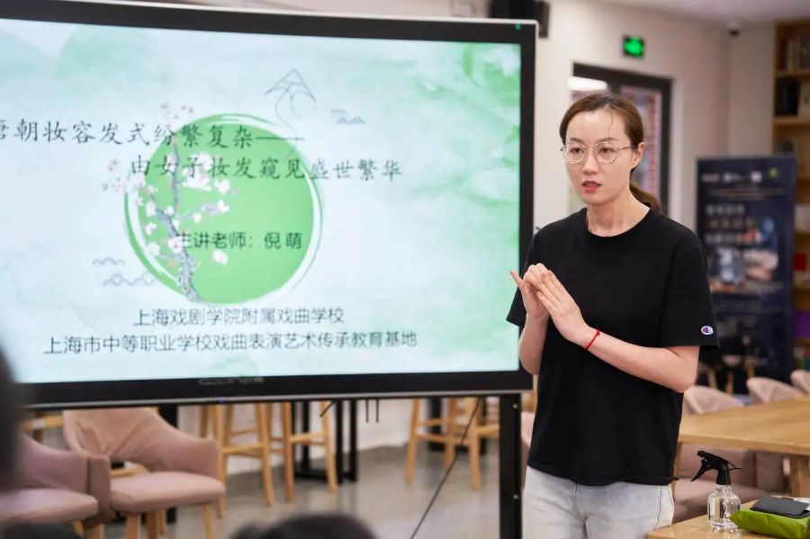 一开场,来自戏曲学校的倪萌老师就给大家介绍了中国古代化妆的起源与发展,人类早期的化妆并不是为了美丽,更多的是适应个体生命生存的要求,比如宗教、装饰或者保护等作用,产生了最早的化妆手法。随着时代的变迁,化妆成为了人们生活中的一部分。