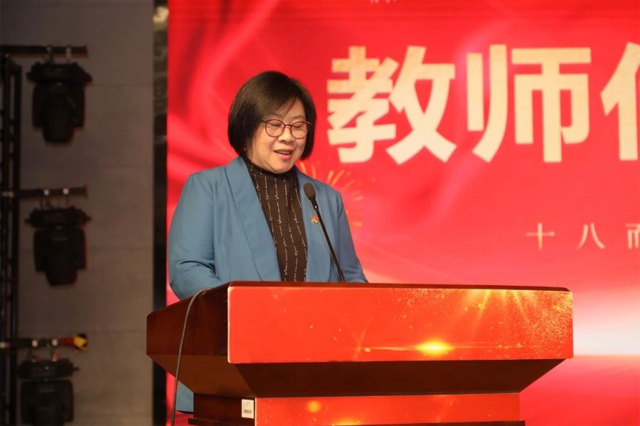 教师代表董堃老师希望同学们能够珍惜美好年华,学会感恩学会担当,用热情和梦想去追求自己的目标,并叮嘱同学们关注身心健康、保持良好作息习惯、培养积极乐观的心态。