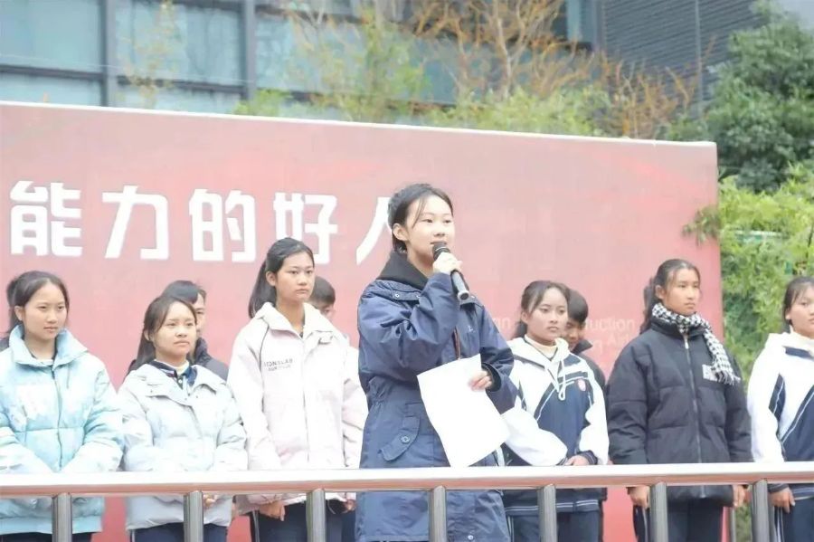 13日清晨的升旗仪式上,18位澜沧县职业高级中学的同学在全体师生热情的掌声中登台亮相,并向大家做了自我介绍。22级旅管3班的沈思雨代表全体同学向来自远方的新同学们表示热烈的欢迎,表达了相互学习、携手共进的美好愿望。