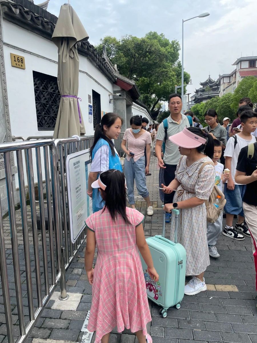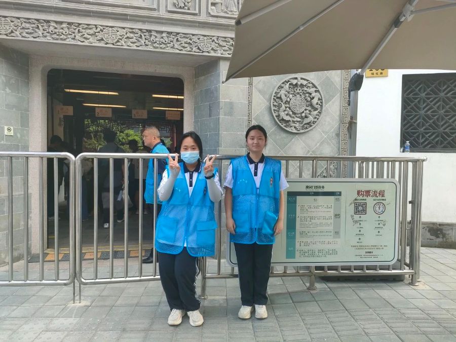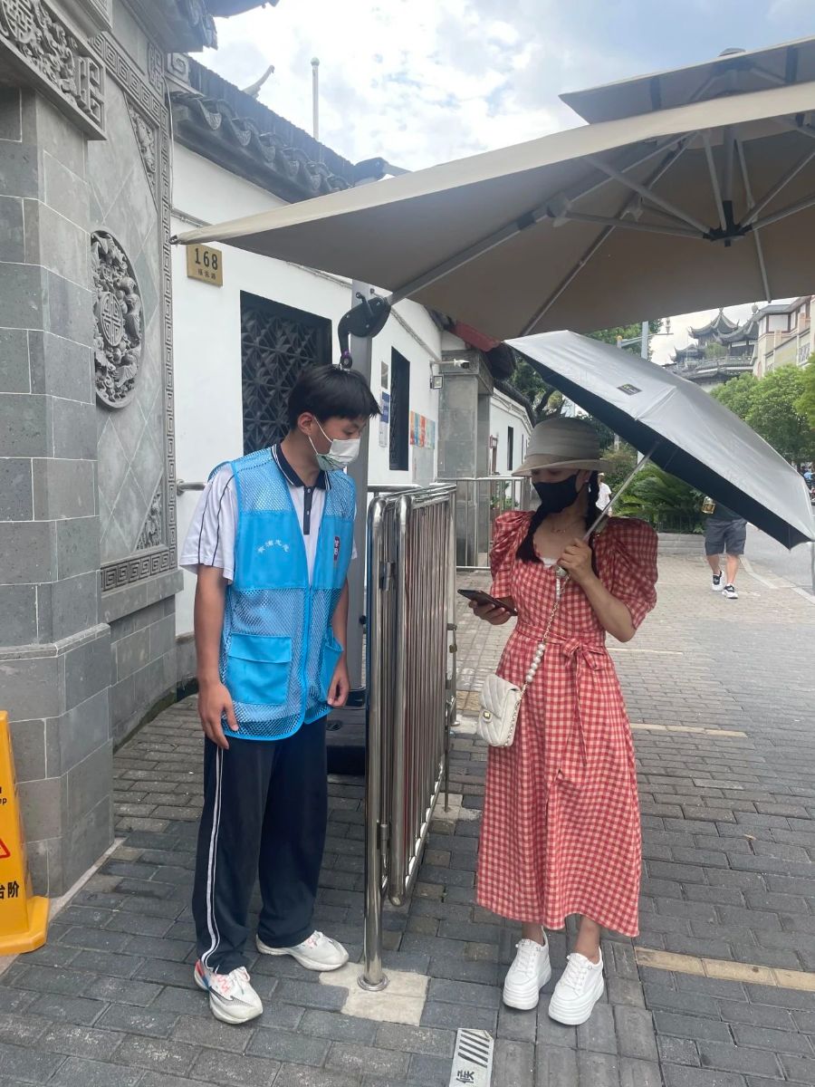 “鸿鹄小队”就开始利用业余时间和整个暑期在豫园景区开展志愿服务,他们经过前期的岗位培训,分组上岗,引导客流,到现在已经可以熟练地指引如何在小程序上购票,并能进行简单地景点讲解。班级的谢皆迎同学和刘芳榕同学被评为暑期优秀志愿者。