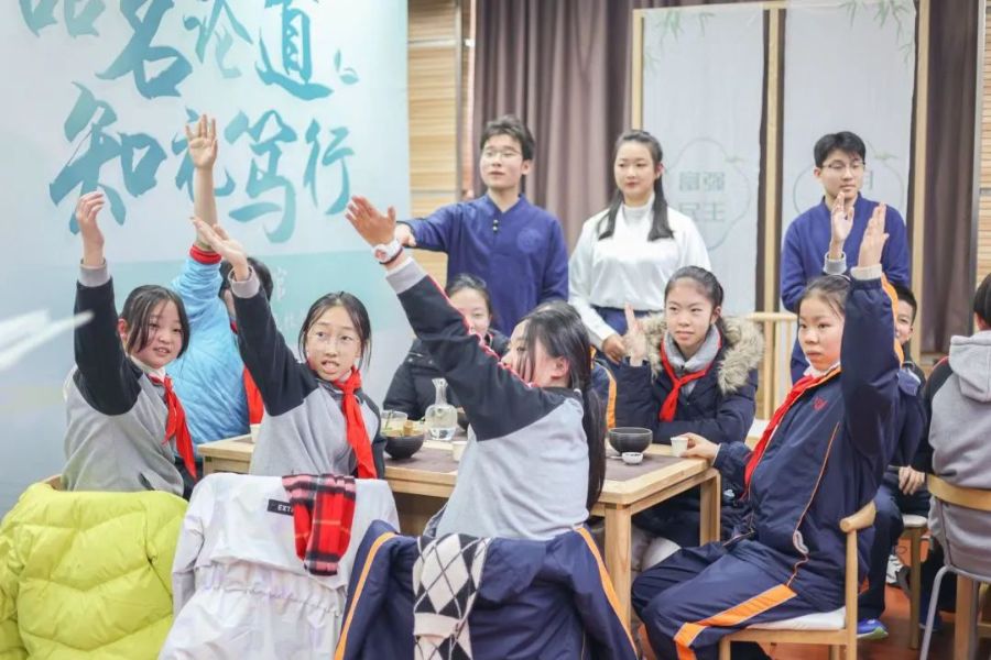 “疏星皎月”“珠玑磊落”“浚皑凝雪”“轻云渐生”“乳点勃然”“乳雾汹涌,溢盏而起”……绝美的词句无不体现了宋人对于茶的极致浪漫追求。“博雅茶韵”快闪茶馆活动的第二站来到了上海音乐学院附属黄浦比乐中学。在这里,茶艺社团成员们和比乐中学的老师同学们穿越千年,一同体验宋式点茶的雅趣,同时真正地感受中国传统优秀茶文化的魅力。