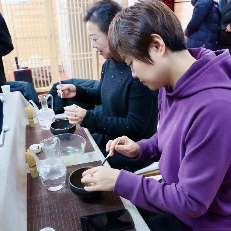 随着时间的流逝,图案和汤沫渐渐消散,到了品茗的环节。大家将自己的成果细心乘出,慢慢品味。随着精雅的汤沫入口,绵密软滑的口感伴着疗愈后的好心情一起入喉,身心沉浸在曼妙茶香之中,品味着来自千年前的风雅。