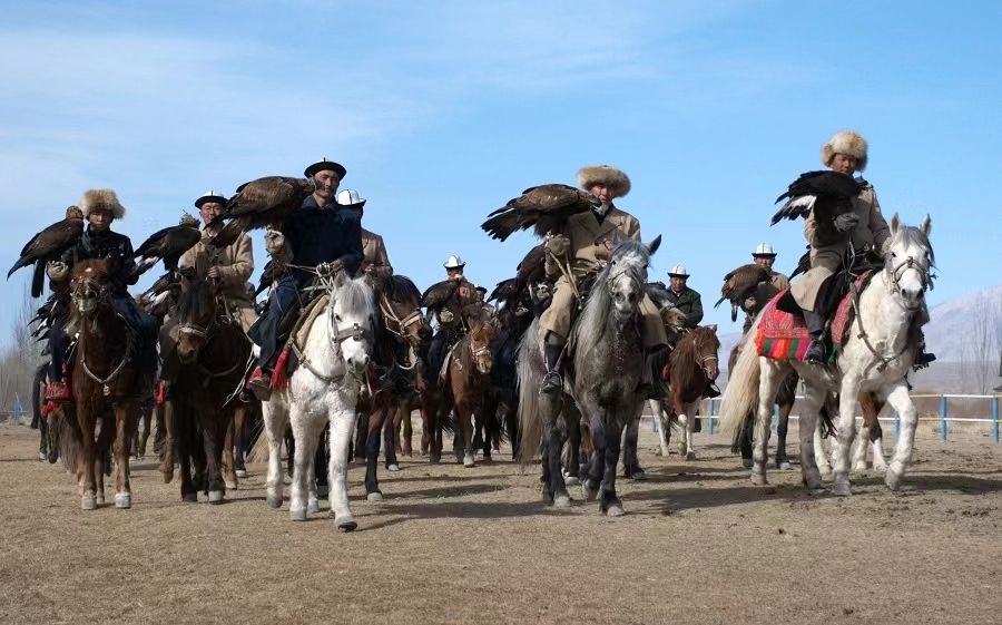 如今,阿合奇县已培养各级驯鹰传承人87名。在文旅融合的大背景下,非物质文化传承人为游客表演驯鹰、捕猎全过程,让游客深度体验柯尔克孜族驯鹰文化,进一步体验风土人情,感受猎鹰刺破苍穹的速度与激情。”阿合奇县非遗文化和旅游项目的融合让传统文化更具有活力