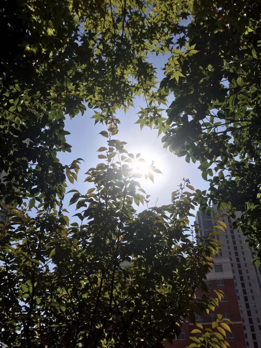 每年的这个时候,一抬头,总能看到绿油油茂密的树叶和刺眼的大太阳,这场景真的太美了。