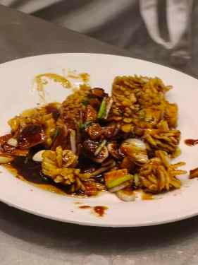 热锅冷油,爆香葱姜蒜与小米椒,倒入墨鱼卷大火翻炒10秒,让每一卷都裹上热油香气。沿锅边淋入调好的酱汁,保持大火快速翻匀,酱汁浓稠后即刻出锅,避免墨鱼变老。