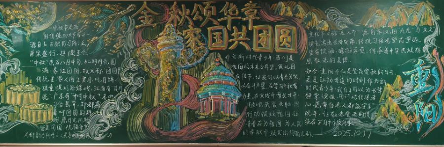 这一期以“金秋颂华章,家国共团圆”为主题的黑板报,将中秋的脉脉温情与国庆的家国情怀织就成一幅鲜活的文化长卷。